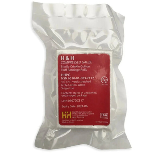 H and H Compressed gauze стерильний бинт, що створений спеціально для тампонади рани, щоб зупинити кровотечу.